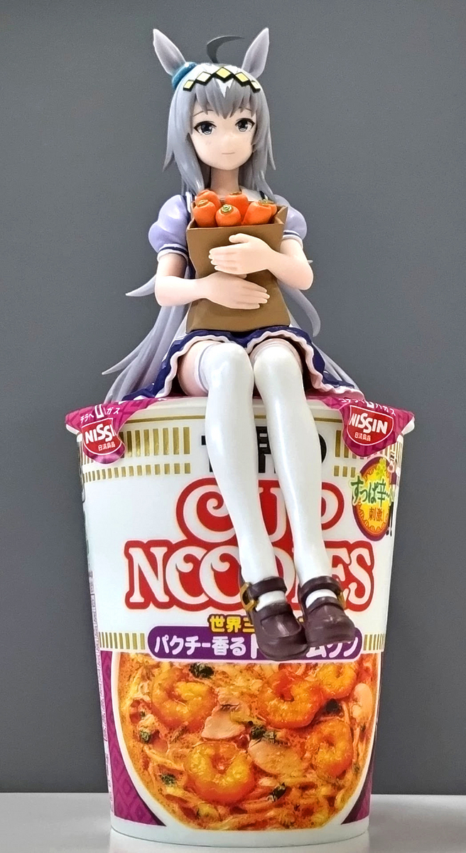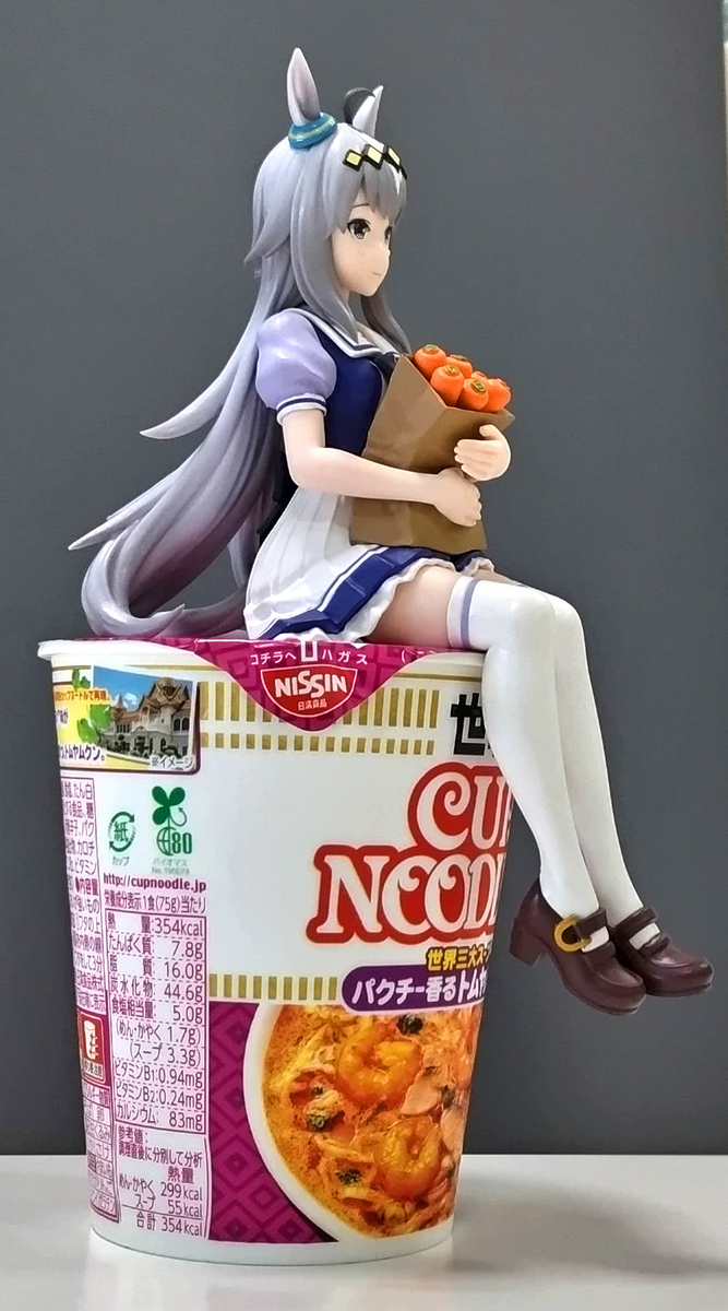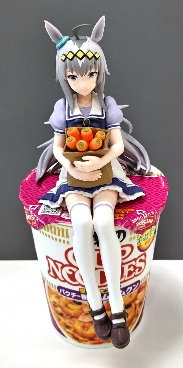 使用頻度の事を考えて逡巡していたオグリキャップのフィギュア(カップラーメンの蓋が空かないようにするおもり)