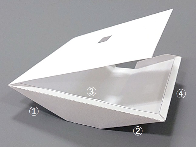 切り離し→折り線処理→切り出し→折り→固定