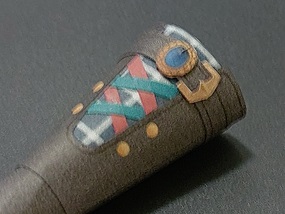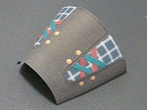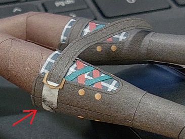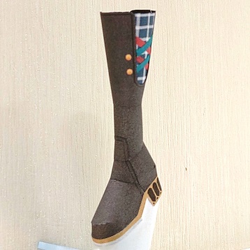前回お話した足先の変な形はブーツの踵に嵌るわけですな