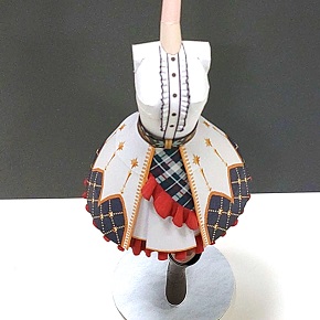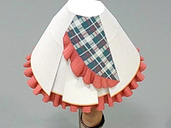 3層目の外スカートはチェックの斜行前掛けを貼り付けた後
